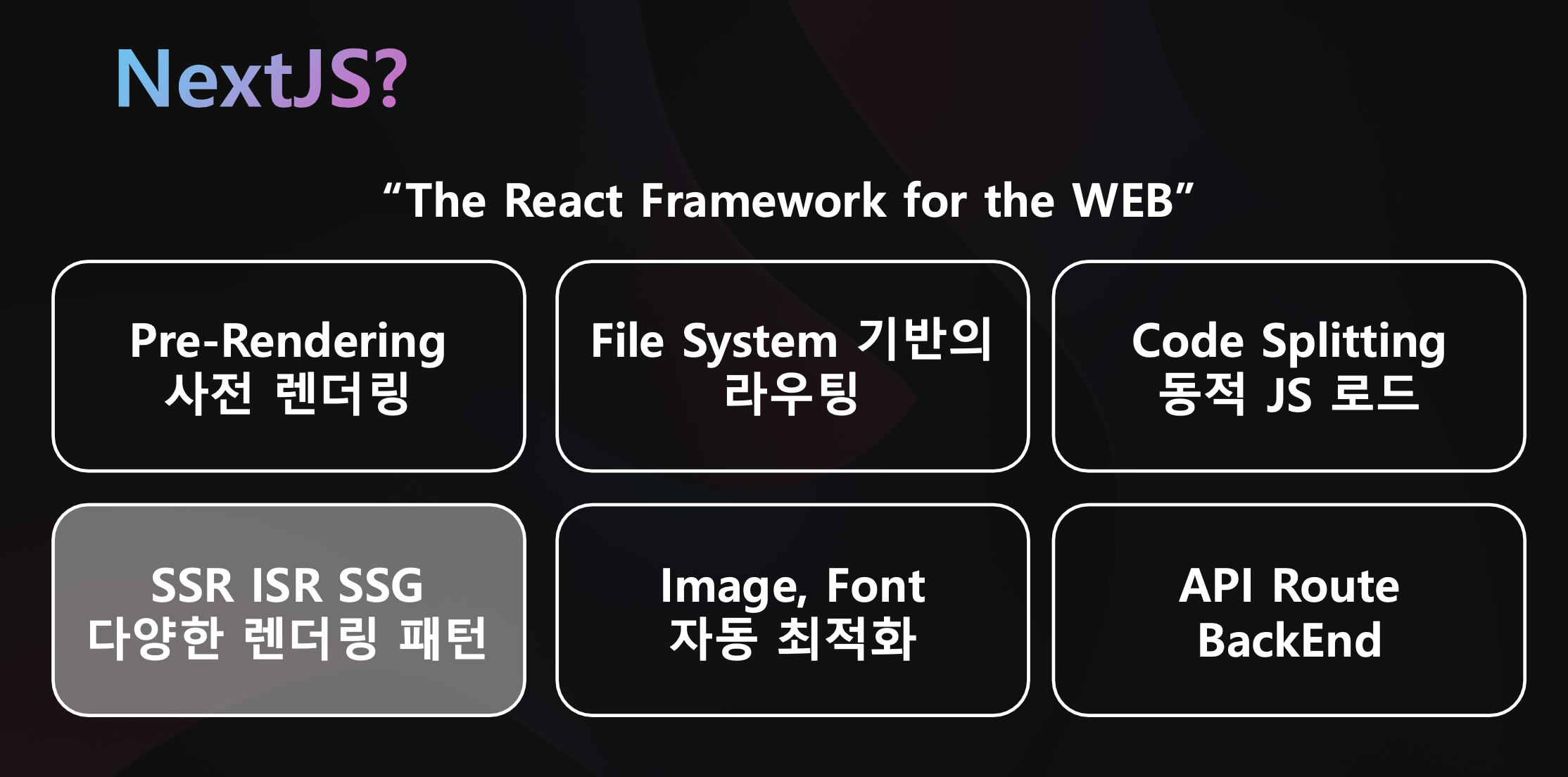 NextJS ๋ ๋ฆฌ์กํธ ๊ธฐ๋ฐ์ ์น ํ๋ ์์ํฌ์ด๊ธฐ ๋๋ฌธ์ ๋ค์๊ณผ ๊ฐ์ ํต์ฌ ๊ธฐ๋ฅ๋ค์ ๋ด๋ถ์ ์ผ๋ก ์ ๊ณตํฉ๋๋ค. ๊ทธ์ค์์ ์ ๋ ๋ ๋๋ง ํจํด