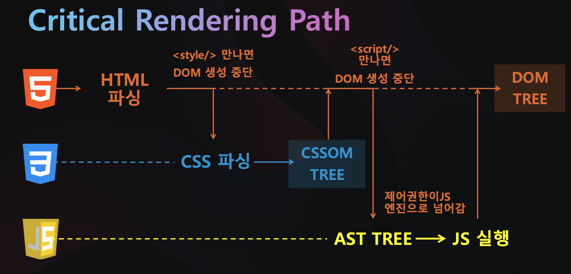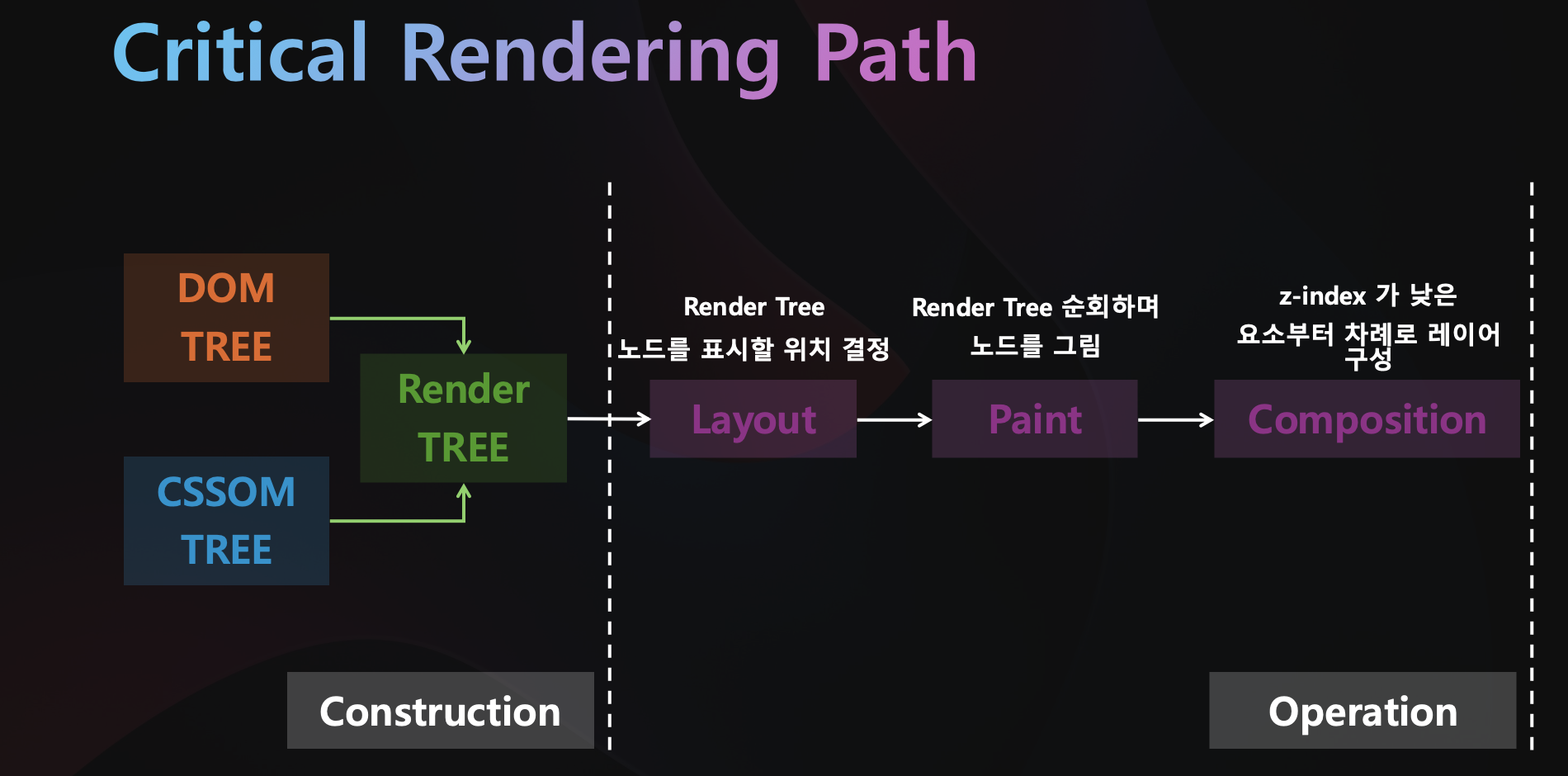 ๋ธ๋ผ์ฐ์ ๋ HTML, CSS, JS ๋ฅผ ํด์ํ์ฌ ํ๋ฉด์ ์นํ์ด์ง๋ฅผ ๊ทธ๋ฆฌ๊ฒ๋๋๋ฐ, ์ด ๊ณผ์ ์ Rendering ๋ ๋๋ง